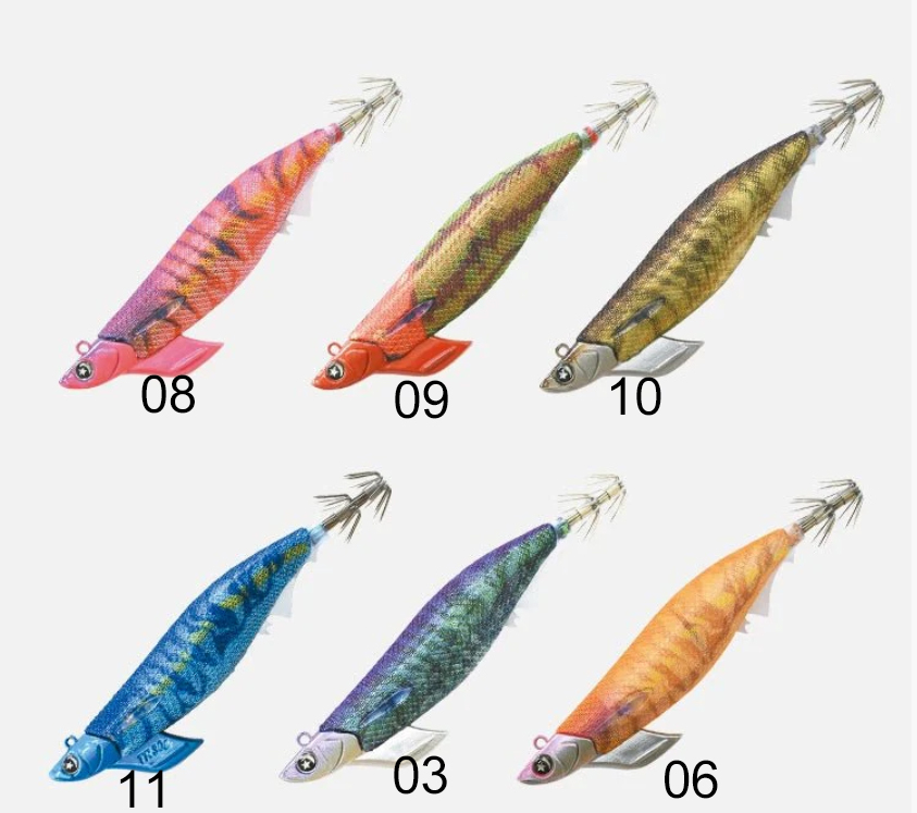 Especialmente diseñadas para la pesca Tip Run desde embarcación, está equipado con estabilizadores de material Keimura en las posiciones de la aleta pectoral y la aleta caudal. Si bien logra una natación estable, también demuestra un sólido atractivo visual para la vista del calamar.