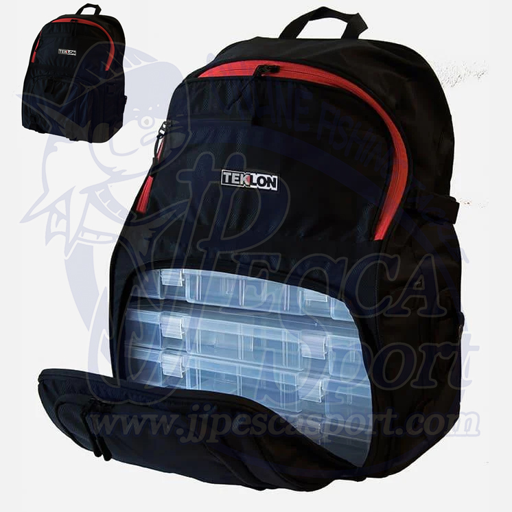 ¡La gran capacidad de la mochila Teklon® Fraser 483804 no te dejará indiferente! Incluye cuatro cajas para señuelos o aparejos en su parte inferior a las que accederás por su bolsillo frontal inferior. Además, incluye un segundo bolsillo frontal inferior para guardar tus pertenencias. En la parte superior un gran bolsillo principal aporta un extra de almacenaje, además de un bolsillo extra frontal para pequeños complementos. En los laterales está equipada con un soporte específico para alicates, y dos correas y una cincha que te permitirán transportar cómodamente una o dos cañas. En el lado contrario tiene un pequeño bolsillo con cremallera y bolsa de maya. Su construcción con tejido Ripstop anti desgarro le aporta la resistencia y ligereza, ideales para nuestras salidas de pesca bajo cualquier condición, incluso cuando llueve. Encontramos la bolsa Teklon® Fraser 483804 tremendamente práctica y esperamos que te guste tanto como a nosotros.